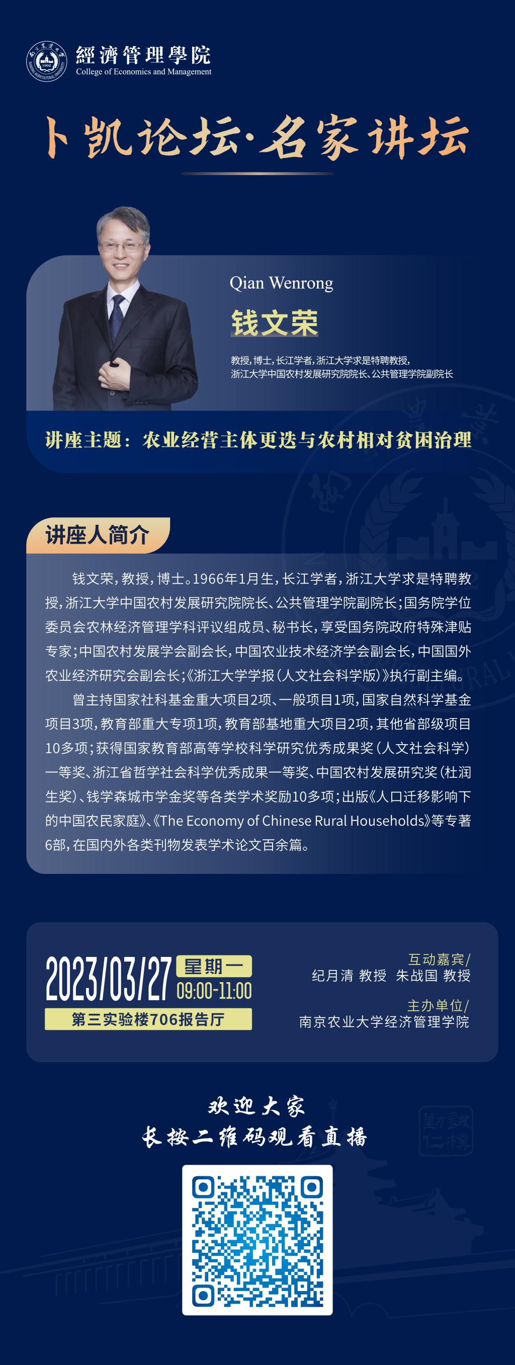 报告人:钱文荣 浙江大学求是特聘教授