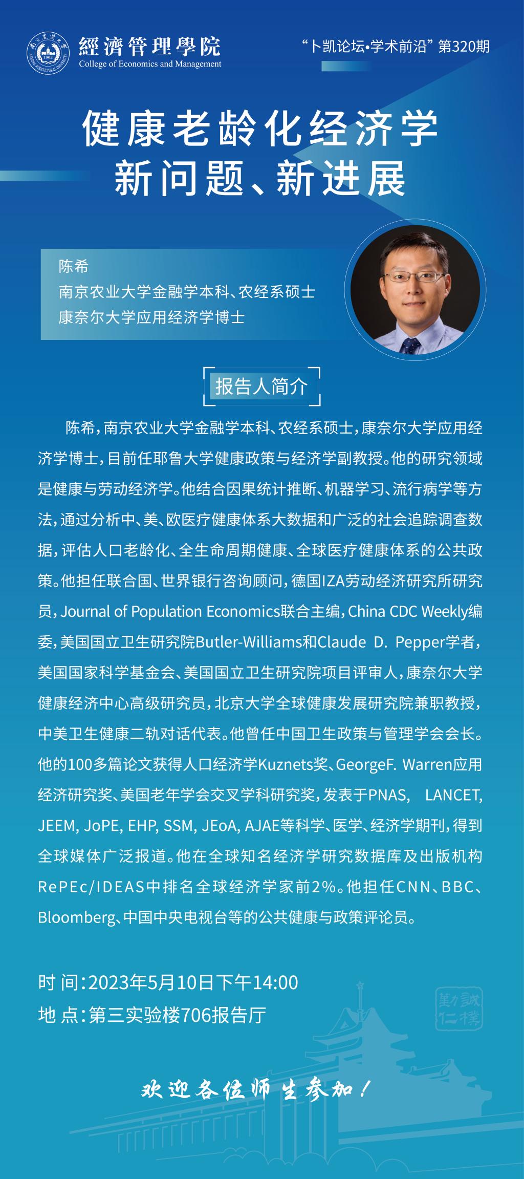题 目:健康老龄化经济学:新问题、新进展