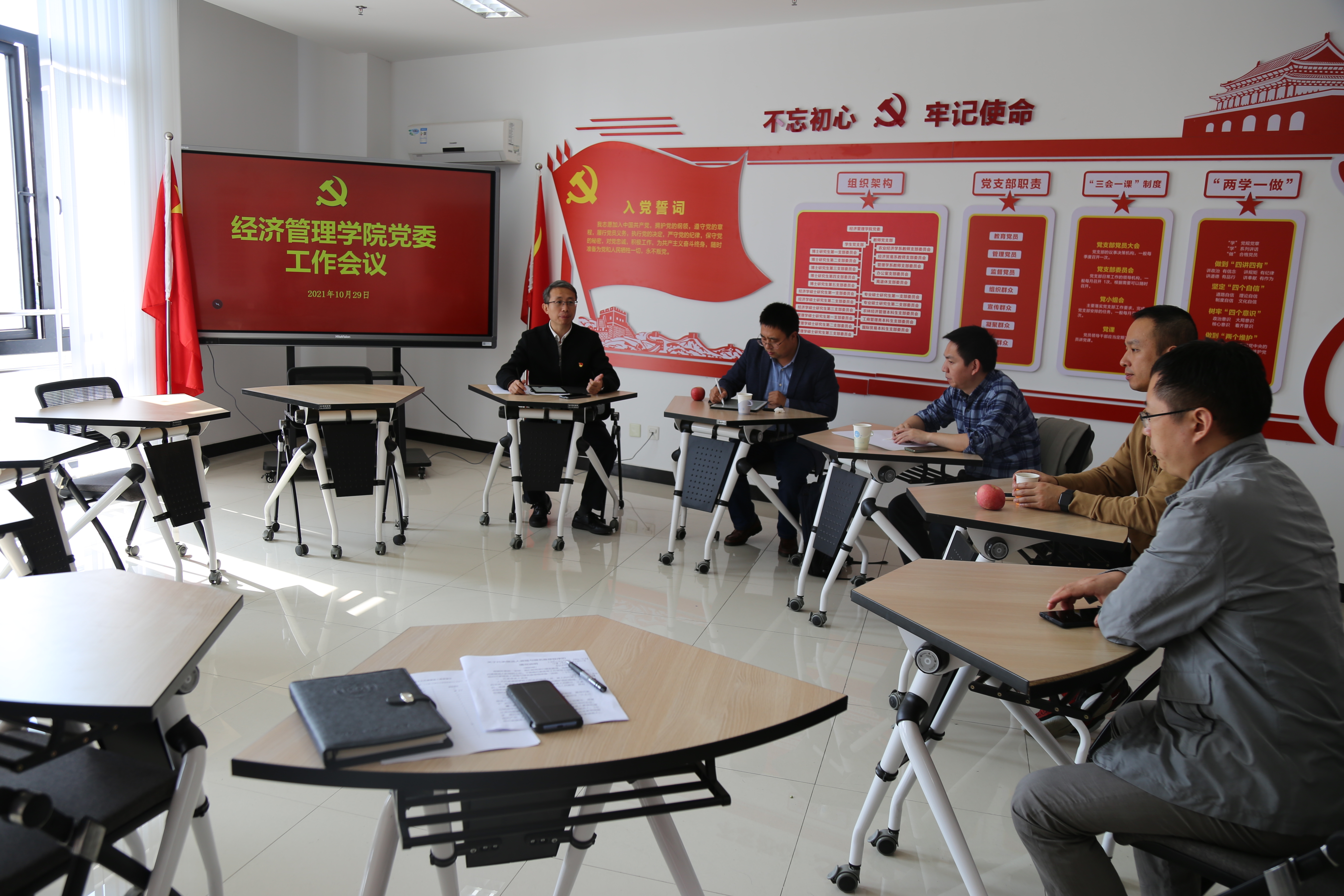 2021年10月29日,det365登录网站主页党委召开工作会议。院党委书记姜海主持会议,党委副书记宋俊峰,党委委员林光华、周力、展进涛等出席会议,办公室主任夏德峰列席会议。