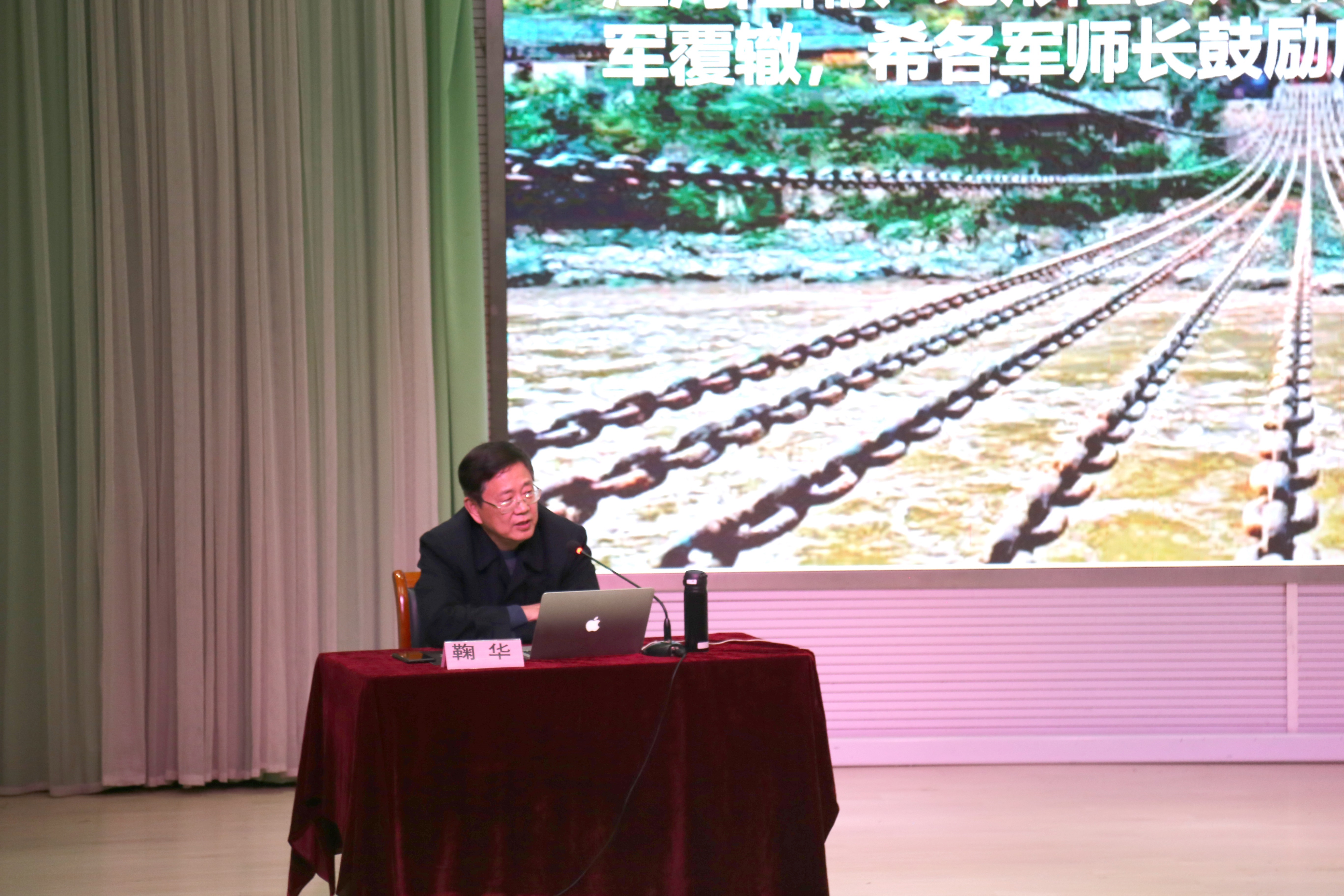 12月15日下午,江苏省金陵书画研究院特聘研究员、江苏省军区原副司令员兼参谋长鞠华为学院师生做“为什么战旗美如画”党史学习专题报告。报告会由院党委书记姜海主持,学院师生200余人参加。