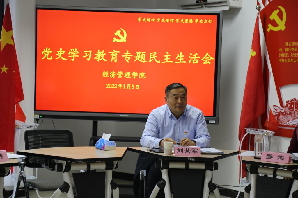 2022年1月5上午,det365登录网站主页领导班子召开党史学习教育专题民主生活会。校党委副书记刘营军参会指导,校纪委委员、教务处处长张炜参会督导。院党委书记姜海主持会议,院长朱晶列席会议。