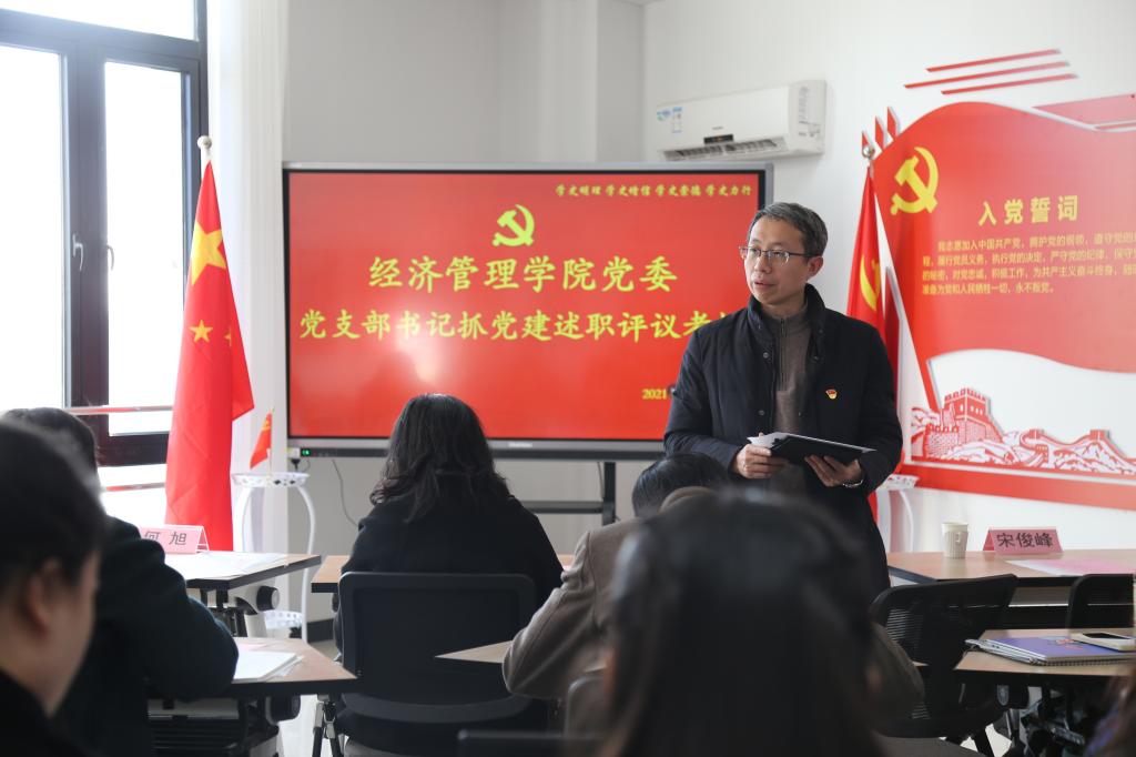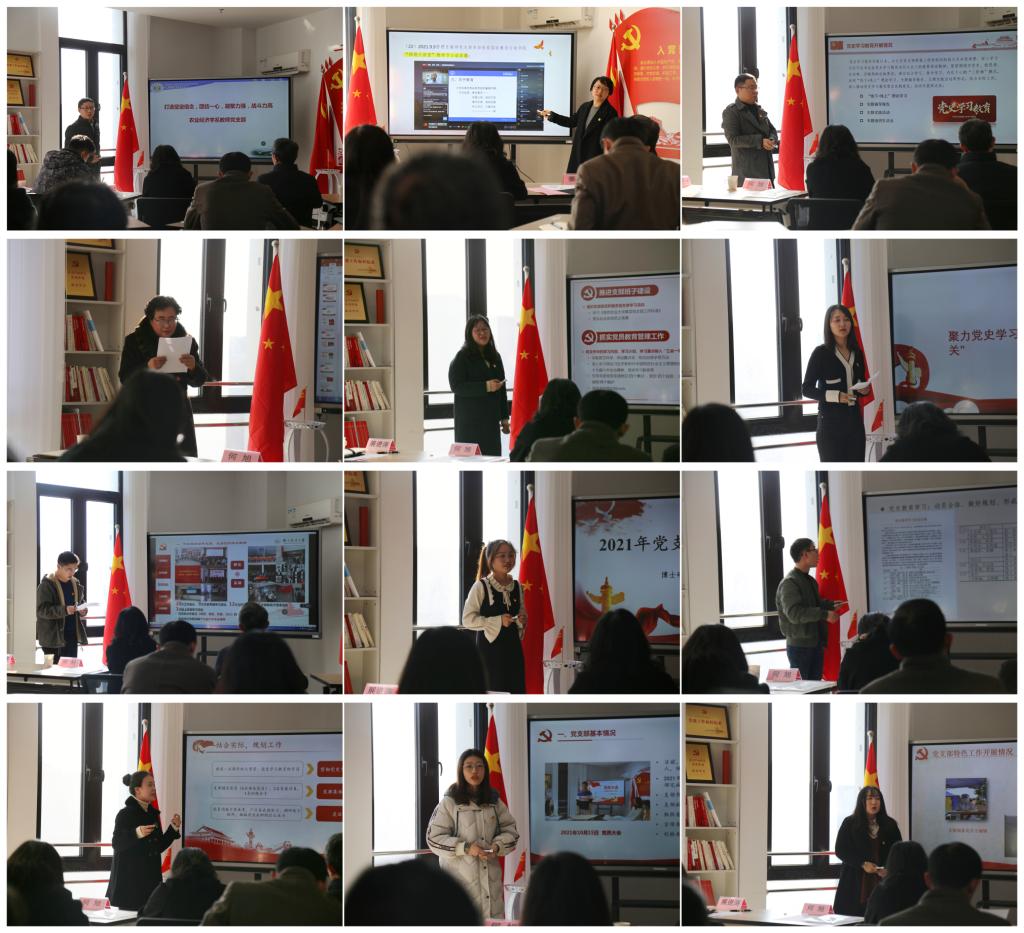 会前,各党支部全面梳理了2021年度支部党建工作情况,扎实做好相关准备。会上,12个师生党支部书记紧扣组织设置、党史学习教育开展、推进中心工作、党员教育管理、 组织生活、特色工作等重点内容,从履行党建责任情况、党建进展情况和成效、思想政治工作情况、存在的突出问题及改进思路等方面进行了汇报。其中,入选学校第二批“双带头人”教师党支部书记工作室的农业经济学系教师党支部书记展进涛一并汇报了工作室中期建设情况;参加学校第三批“党建工作样板支部”申报的党支部书记也进行了相关汇报。未参与现场述职的党支部书记均以书面形式进行本年度工作汇报。