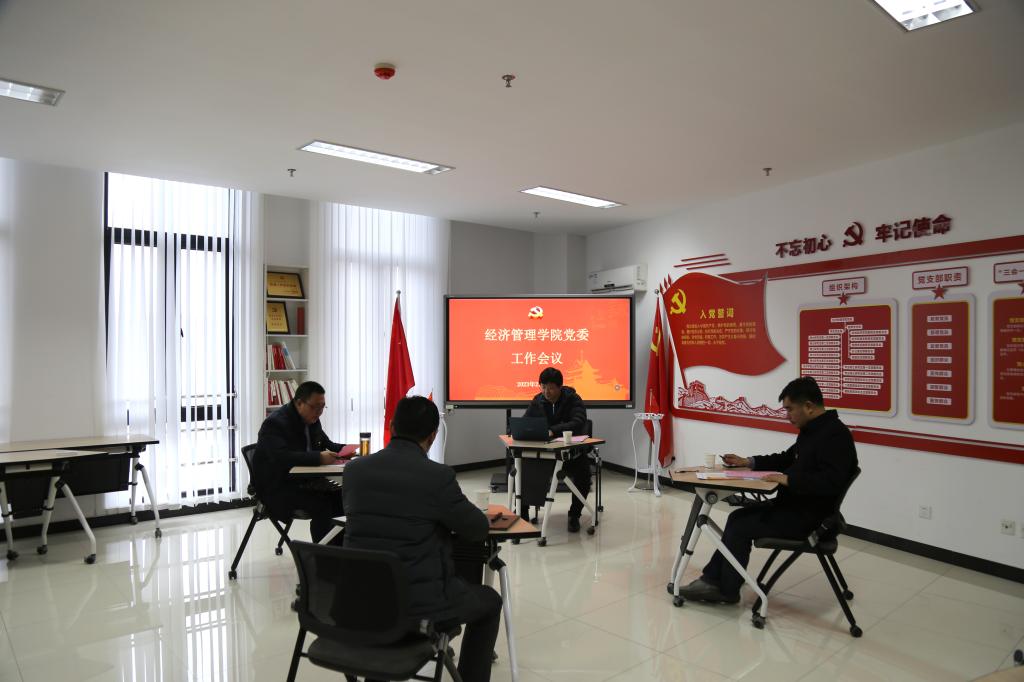 2023年2月23日,det365登录网站主页党委召开党委工作会议。院党委副书记宋俊峰主持会议,院党委副书记、院长徐志刚,党委委员耿献辉、展进涛参加会议。