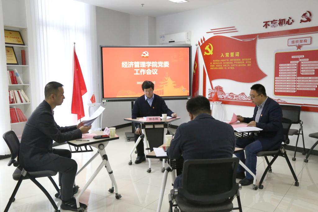 2023年4月24日上午,det365登录网站主页党委在第三实验楼725党员实境会议室召开工作会议。院党委副书记宋俊峰主持会议,院党委副书记、院长徐志刚,党委委员耿献辉、周力、展进涛参加会议。