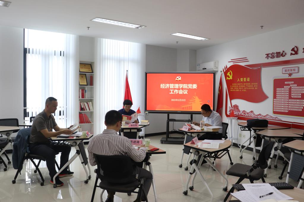 2023年5月23日上午,det365登录网站主页党委在第三实验楼725党员实境会议室召开工作会议。院党委副书记宋俊峰主持会议,院党委副书记、院长徐志刚,党委委员周力、展进涛参加会议。