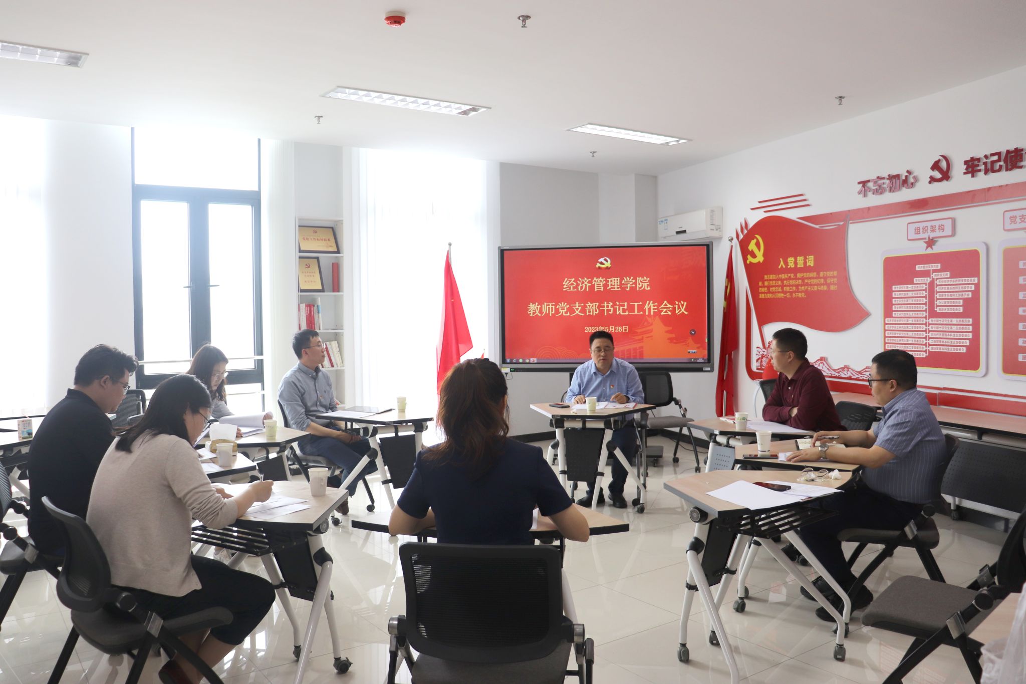 会上,农经系党支部书记展进涛同志分享了支部工作经验;经贸系党支部书记王学君同志、管理系党支部书记虞祎同志就各自支部工作中的难点进行汇报。会上,教师党支部书记和学生党支部书记展开共建交流,并就下一步各党支部深入开展学习贯彻习近平新时代中国特色社会主义思想主题教育进行了部署。
