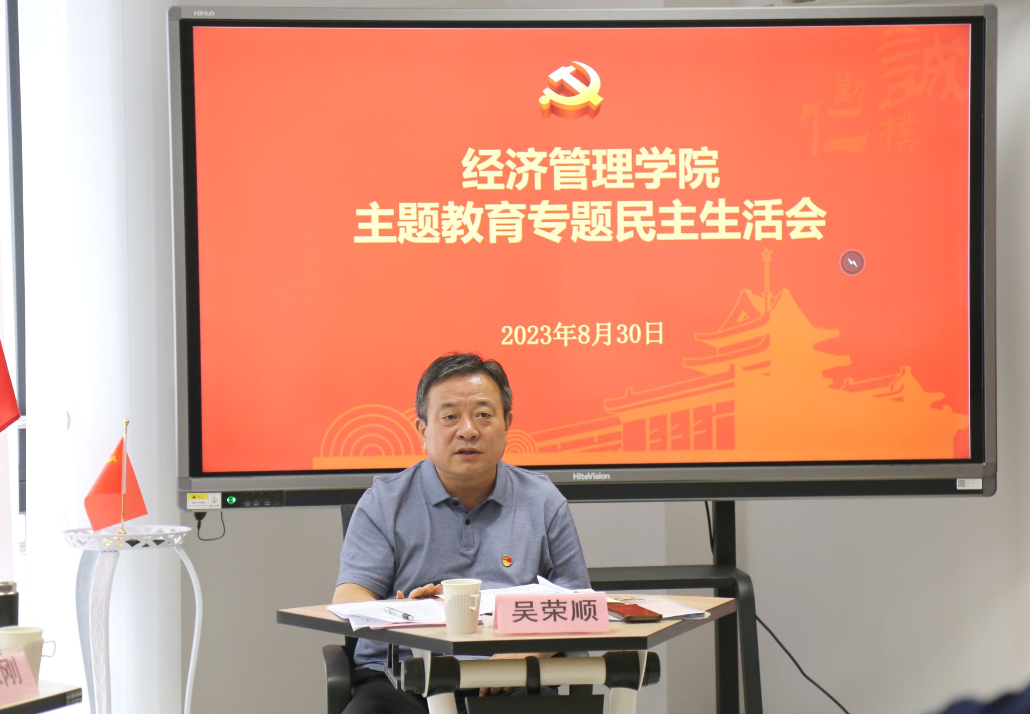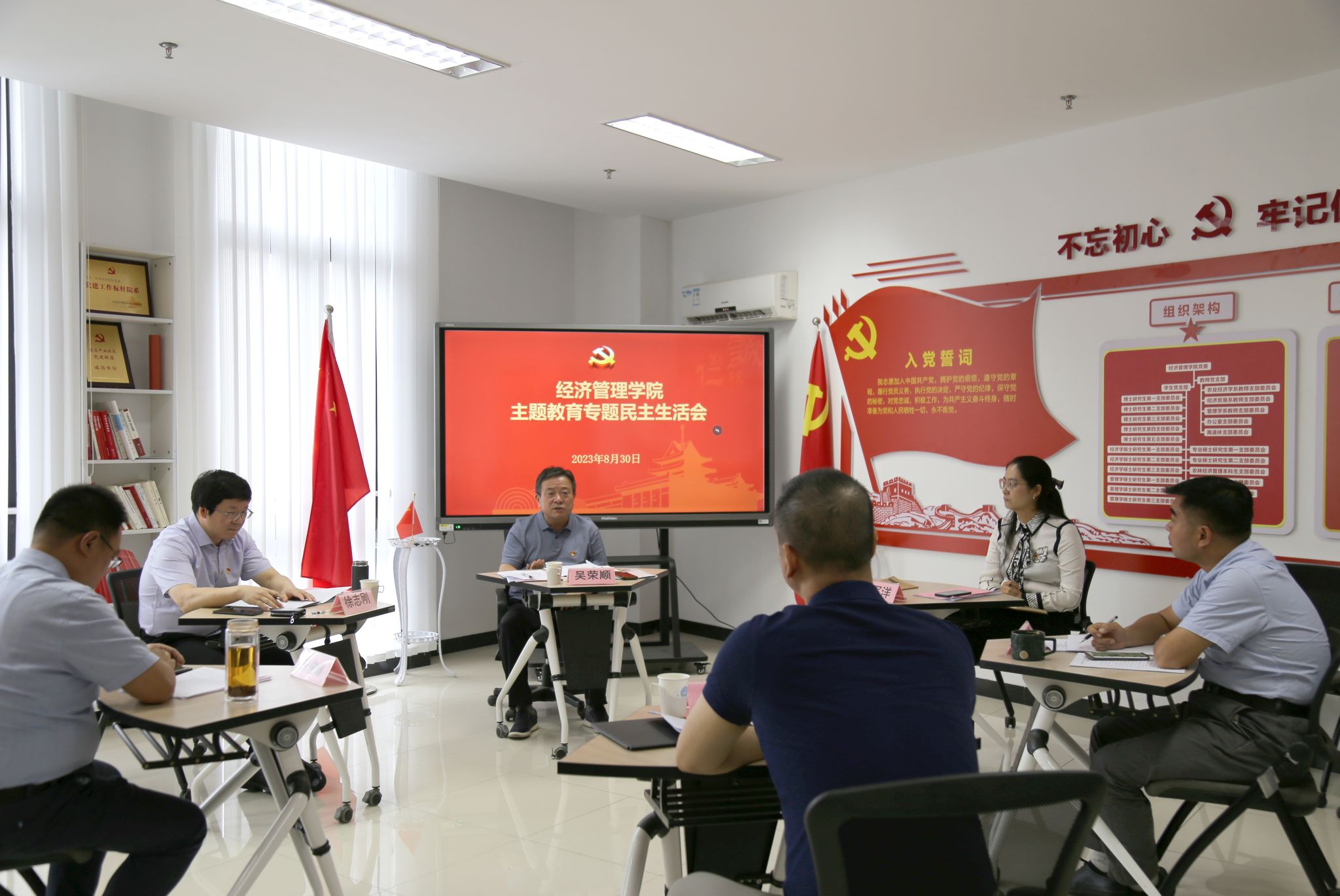 2023年8月30日,按照学校统一部署要求,det365登录网站主页召开学习贯彻习近平新时代中国特色社会主义思想主题教育专题民主生活会。校党委副书记、纪委书记吴荣顺到会指导,党委巡察办副主任郭军洋参会督导。院党委副书记、院长徐志刚主持会议,全体院领导班子成员参加会议。
