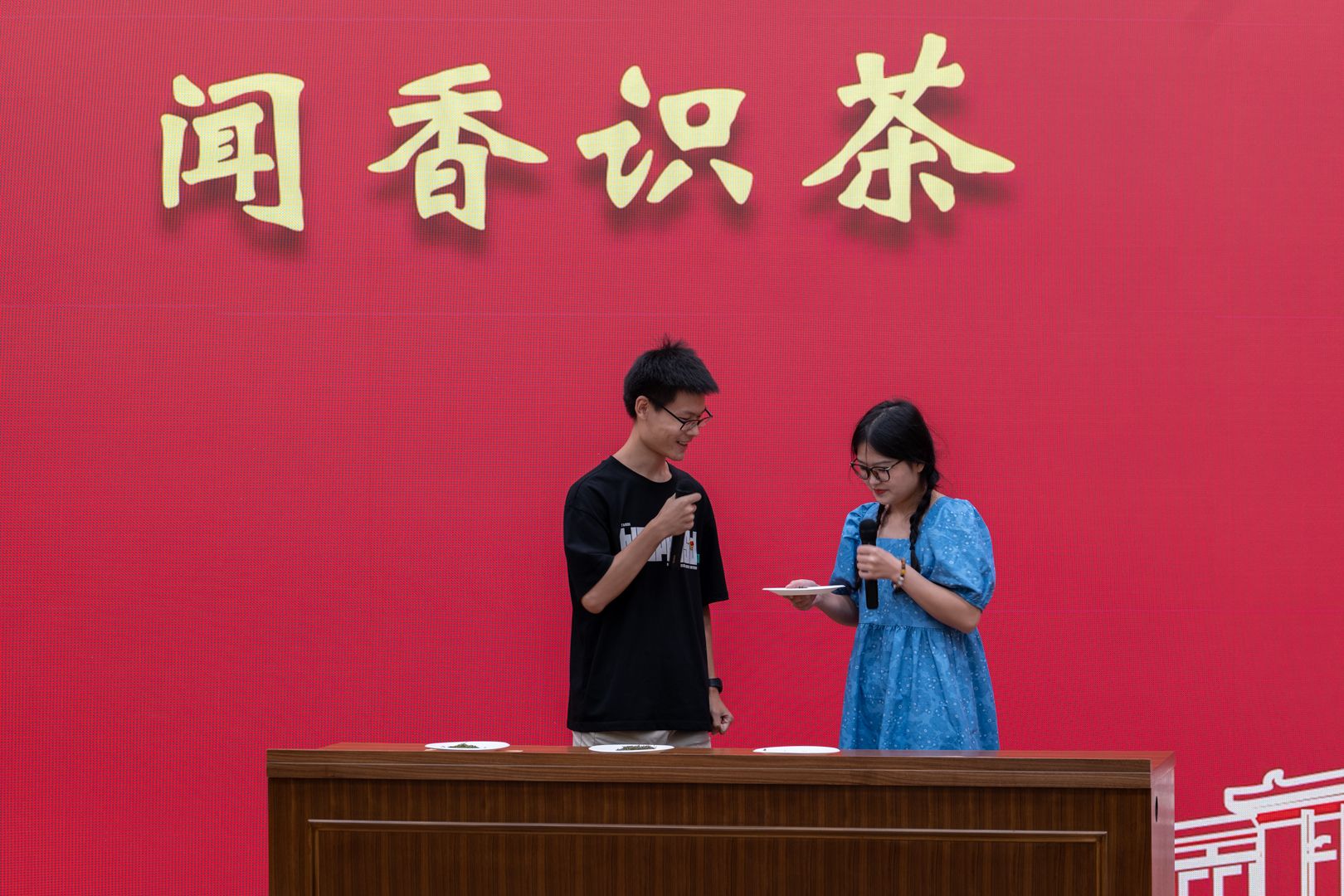 在闻香识茶环节,同学们闻茶香并进行识别,现场同学积极踊跃,每位参与的同学都获得了精美礼品。