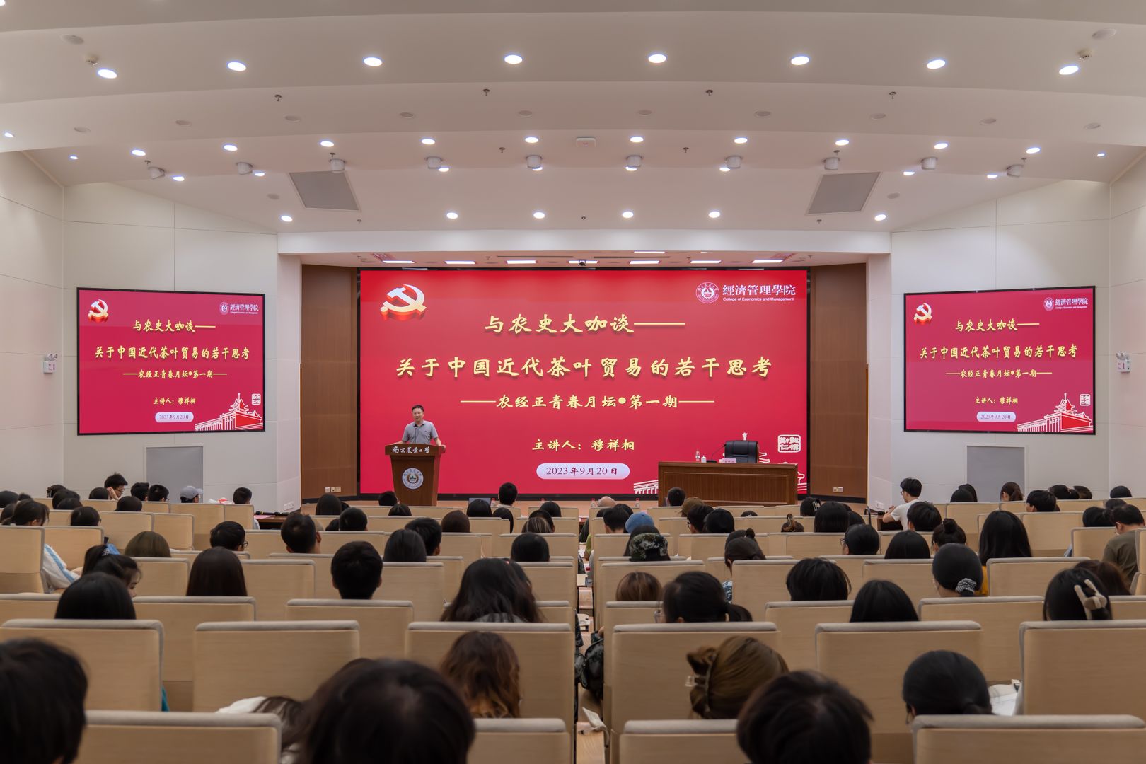 9月20日,det365登录网站主页“农经正青春月坛·第一期:与农史大咖谈——关于中国近代茶叶贸易的若干思考”的讲座在图书馆报告厅举行。本次活动由农经系主任展进涛教授主持,200余名师生参与讲座。