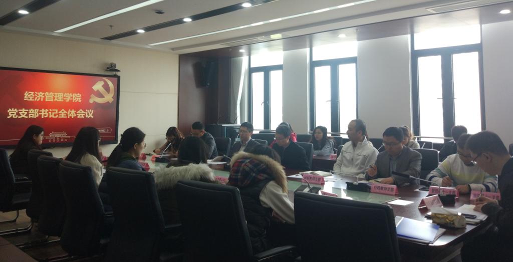 为进一步提升学院党支部工作质量,深入推进党委各项重要工作部署,2019年3月21日,于第三实验楼716报告厅,det365登录网站主页特召开2019年第一次党支部书记全体会议。会议由院党委书记姜海主持,党务秘书师慧、辅导员张杨、李扬、郑琼婷,det365登录网站主页所有师生支部书记参加会议。