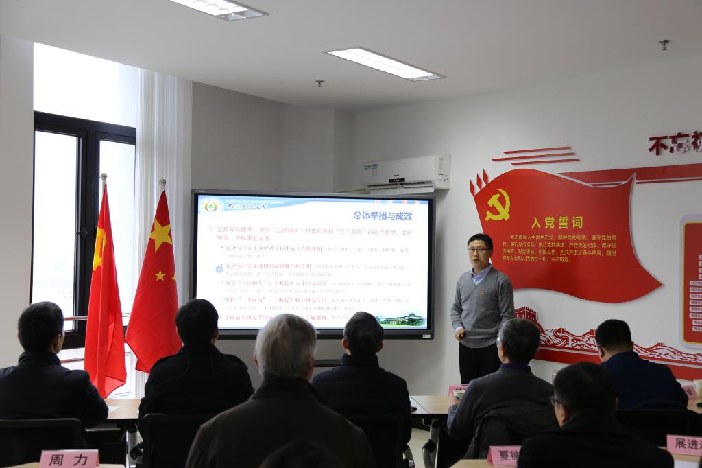 2020年1月6日下午,det365登录网站主页党委组织召开2019年度党支部书记抓党建述职评议考核会议。校第四督查组成员学工处副处长黄绍华、组织部李云锋、人文学院党务秘书刘婷婷参会督查。院党委书记姜海、副书记宋俊峰、党委委员钟甫宁、党委委员副院长易福金参会评议。学院23个党支部全部进行现场述职。