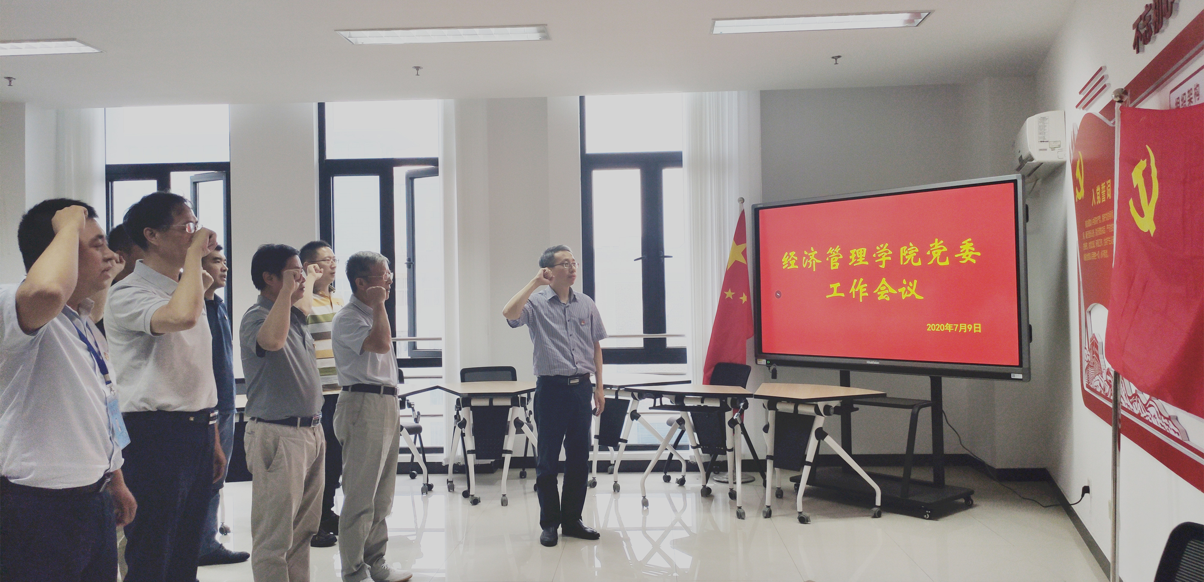 2020年7月9日上午,det365登录网站主页党委在第三实验楼725党员实境课堂组织召开工作会议暨集中理论学习。会议由学院党委书记姜海主持,副书记宋俊峰,党委委员钟甫宁、周曙东、应瑞瑶、耿献辉、易福金、展进涛等参加会议。