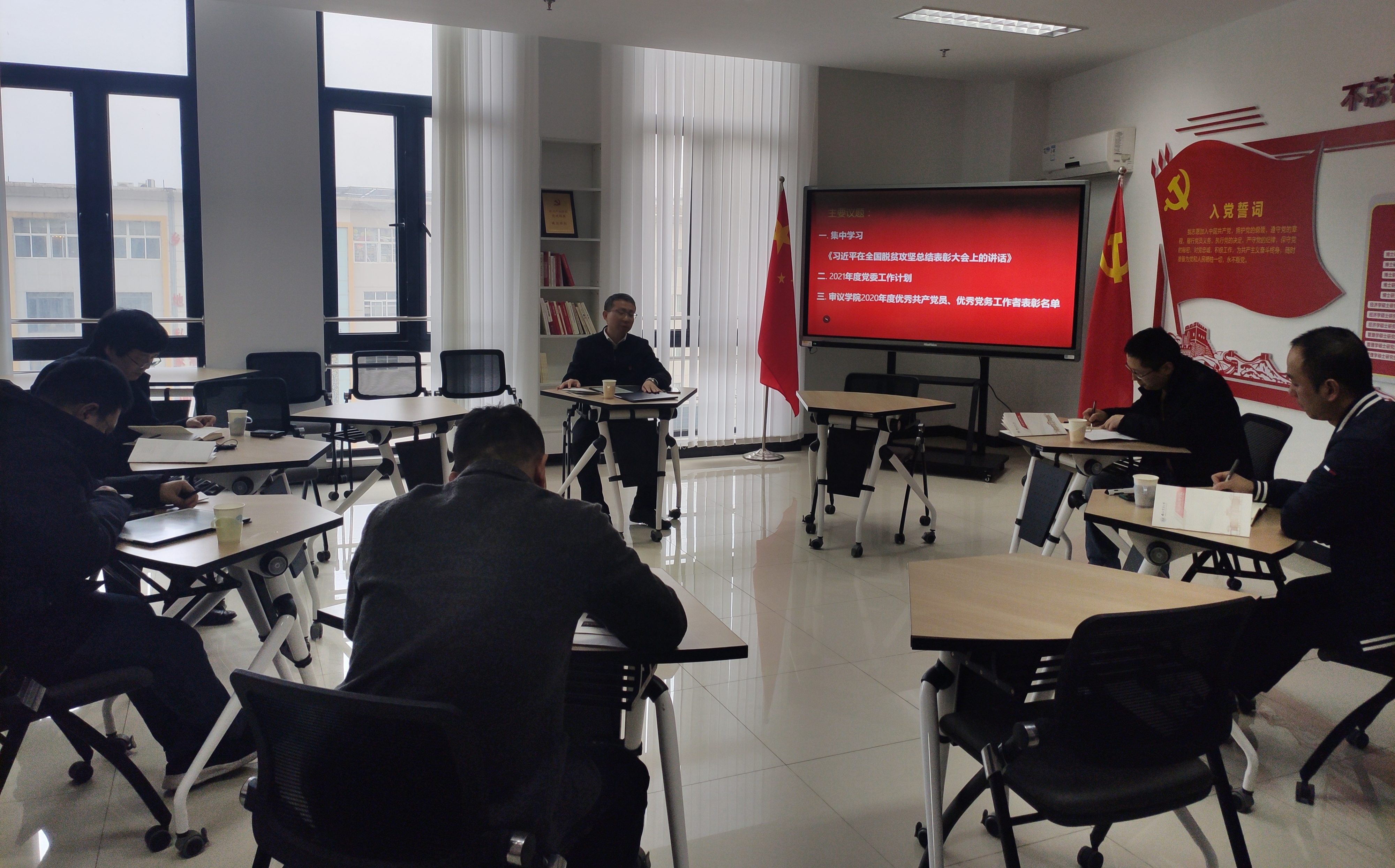 会上,周力领学了习近平总书记在全国脱贫攻坚总结表彰大会上的重要讲话精神。结合党建思政、人才培养、科学研究、社会服务等各方面工作,党委委员进行了学习交流。会议还研究审议了2020年度学院优秀共产党员及优秀党务工作者推荐表彰事宜;对2021年党委工作重点进行了初步探讨。(2021年第四次党委工作会议)