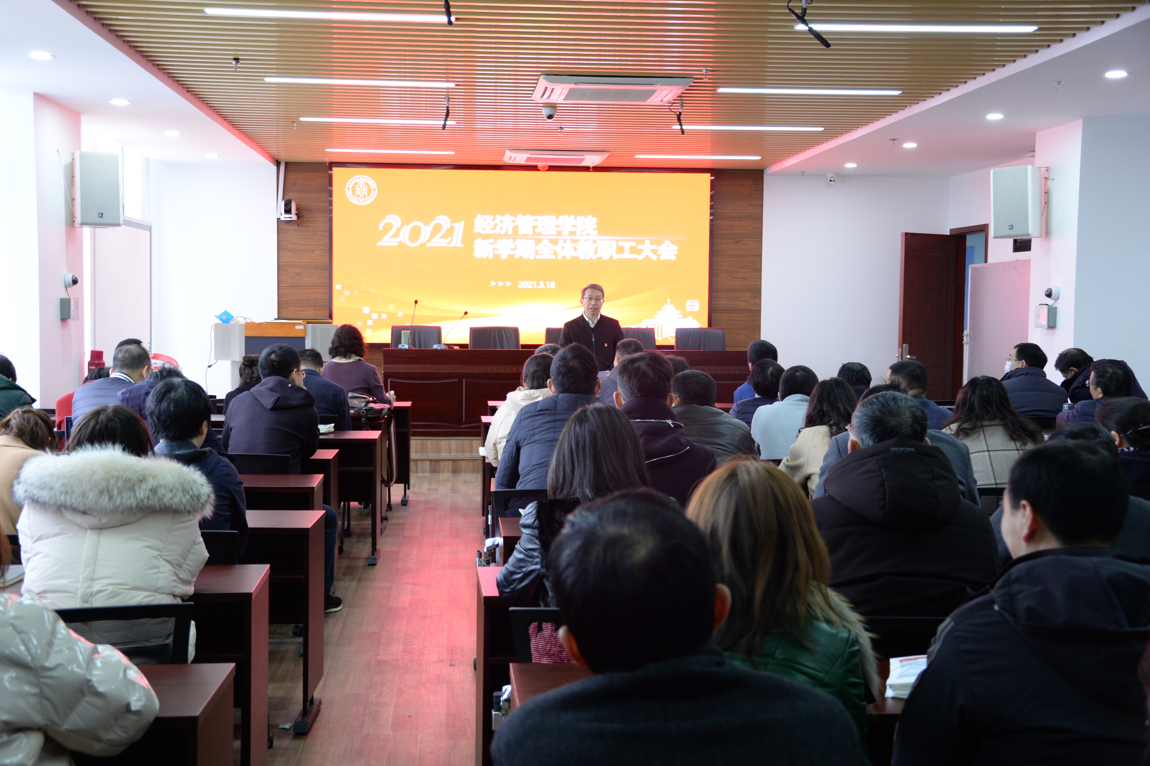 3月18日下午,det365登录网站主页召开2021年新学期全院教职工大会。学院领导班子、全体教职员工出席会议,会议由院长朱晶主持。
