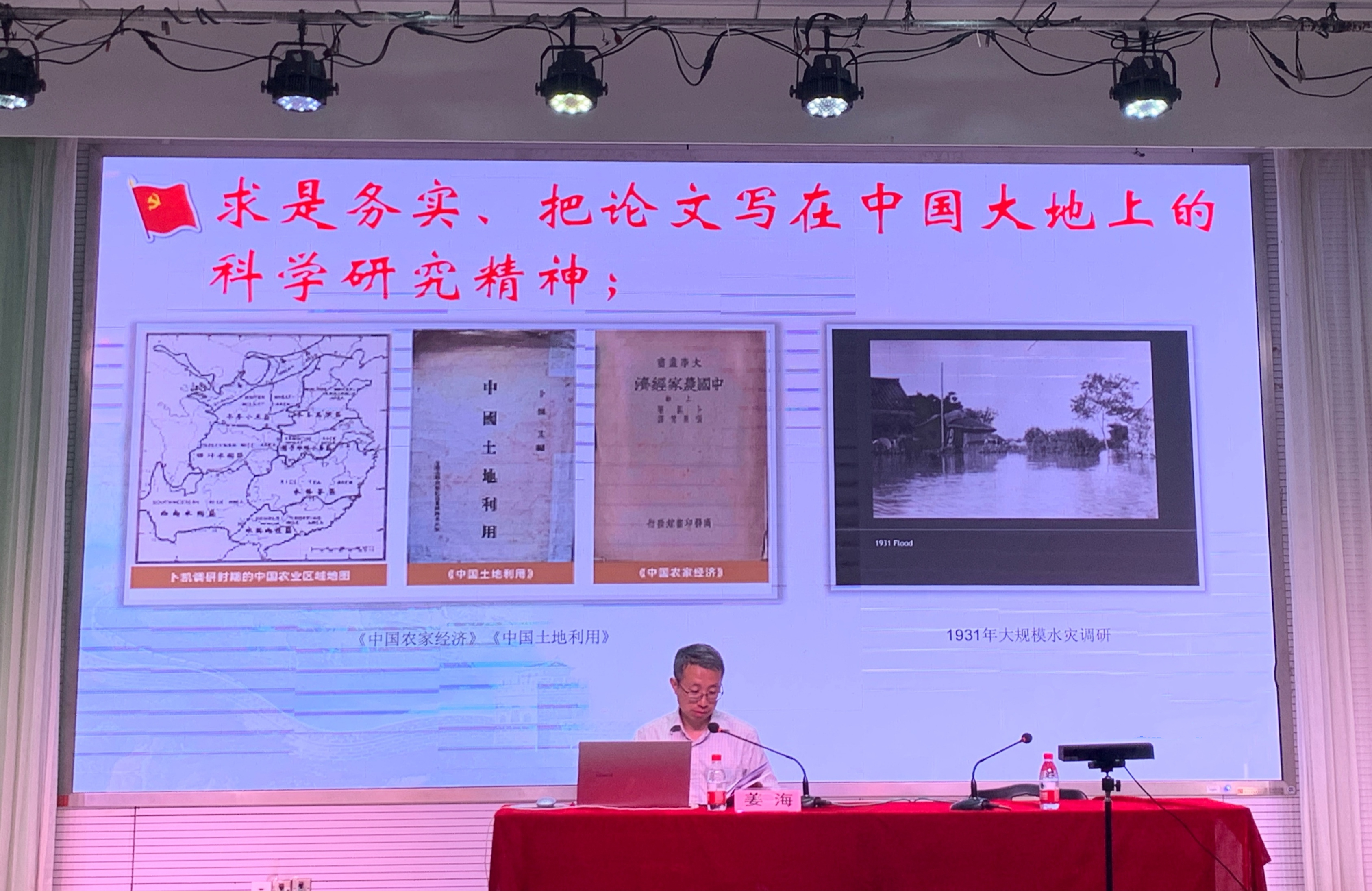 1921年,一艘红船承载共产主义信念、扛着红色革命旗帜劈波斩浪向着朝晖从南湖出发。1921年,中国高校第一个农业经济系在南京建立。党课第二部分,姜海带领大家一起回顾了农经百年来的精神传承。百年农经是百年党史的一个缩影。在党的伟大精神引领下,百年来一代又一代南农经管人,秉持知农爱农、强农兴农的使命担当情怀,践行诚朴勤仁、拔尖人才培养理念,继承求是创新、把论文写在中国大地上的科学研究精神,保持自信开放、讲好中国三农故事的国际化视野,为国家粮食安全、精准扶贫和乡村振兴不懈奋斗,努力做出应有贡献。