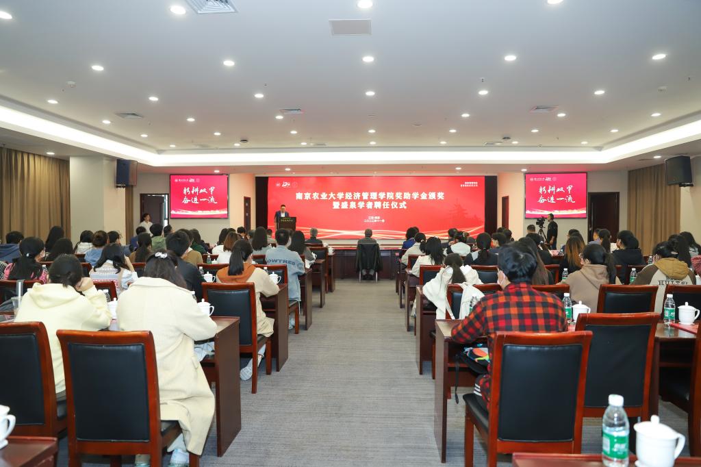 11月20日下午,det365登录网站主页奖助学金颁奖暨盛泉学者聘任仪式在校学术交流中心顺利举办。南京盛泉恒元投资有限公司副总经理袁春燕女士、江左国际集团董事长吴付林先生,江苏社科名家、det365登录网站主页钟山特聘教授钟甫宁教授,det365登录网站主页原副校长徐翔教授、学院党政领导班子全体成员出席活动。学院获奖教师代表、获奖学生代表近80人参加活动。活动由院党委副书记宋俊峰主持。