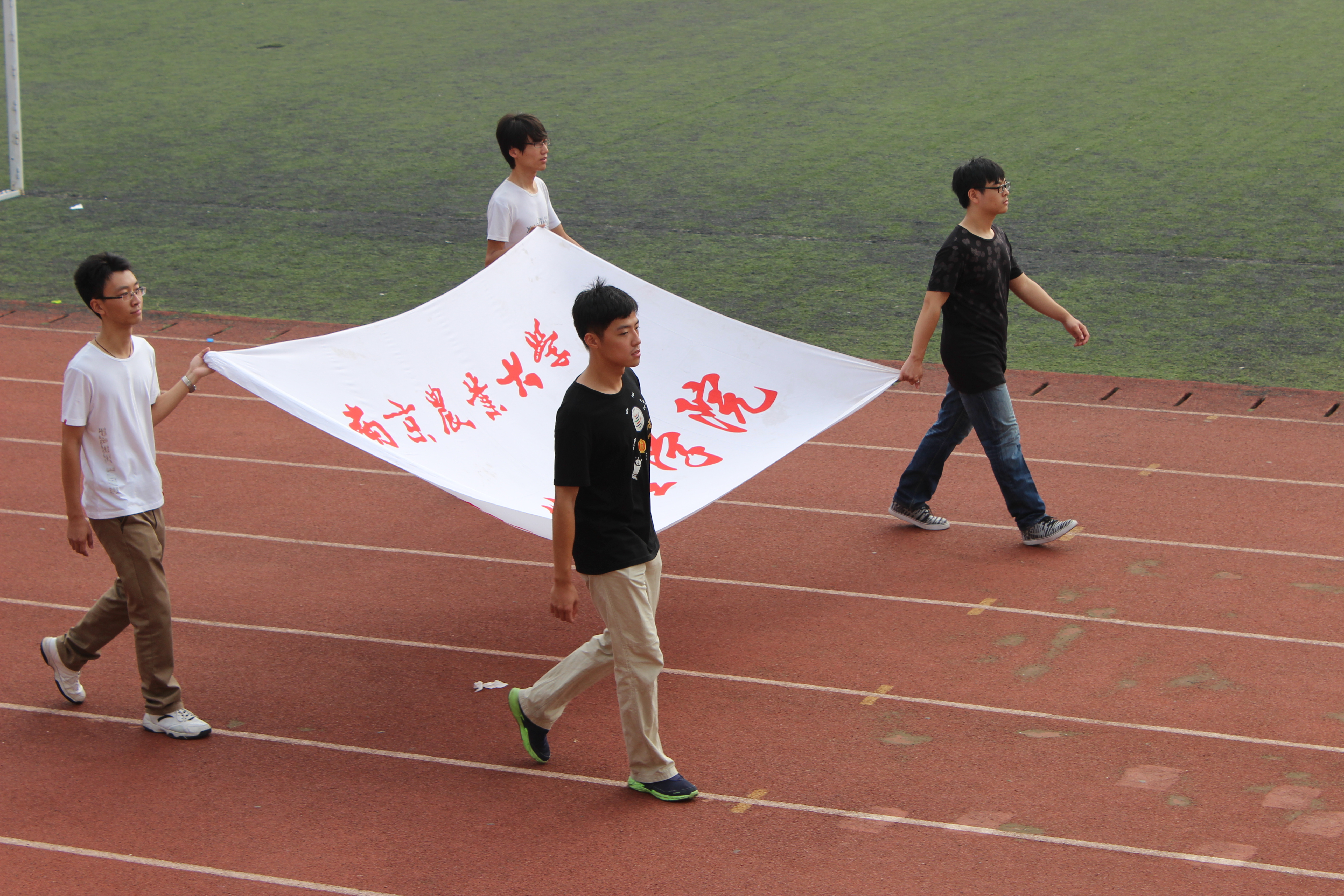 赛场上,运动员们挥洒着青春与汗水,奋勇拼搏。不论是田赛抑或是径赛,无论赢与否,赛场上的每一位运动员都是赢家。响起的助跑预备、起跑枪声,挡不住运动员们昂扬向上的气势;火一般的烈日,抹不去运动员们永不放弃的誓言。选手们个个轻捷如燕,威猛如鹰,为挑战自我而奋斗,为集体荣誉而拼搏。