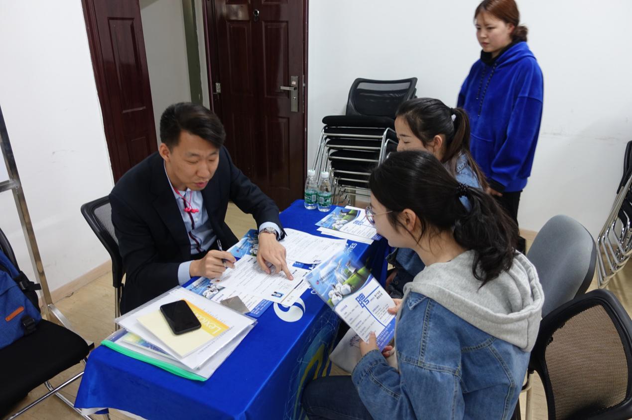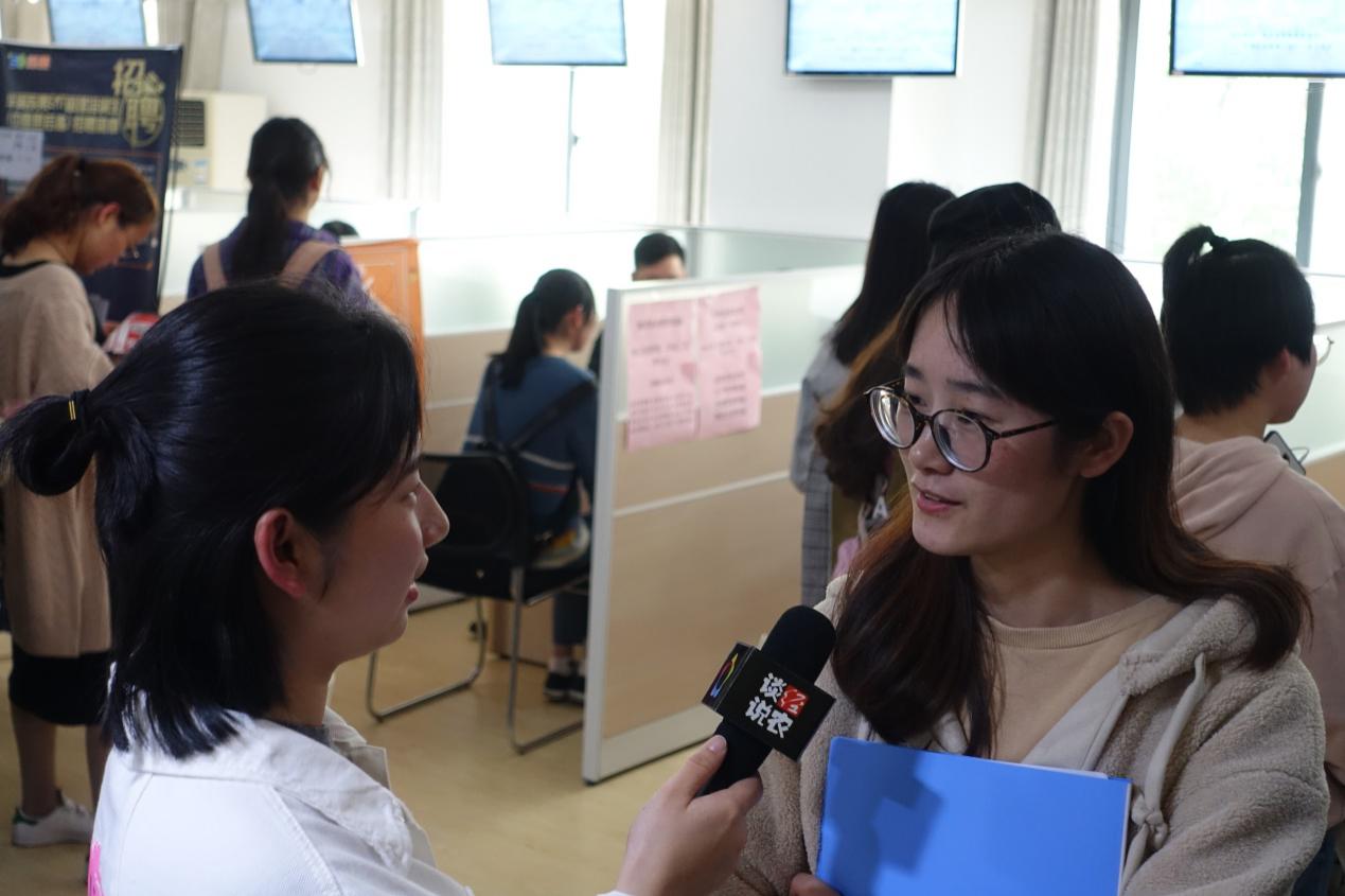 招聘单位通过树立展板、现场讲解、发放宣传单等方式向应聘者详细介绍公司规模、岗位职责、任职要求、职员薪资及福利待遇等信息。应聘者从岗位发展空间、工作时间、实习期食宿等方面提出问题,招聘单位对这些问题一一进行了解答。同时,招聘单位通过现场面试考察了应聘者的专业能力,以及学习、英语、沟通表达等相关能力。