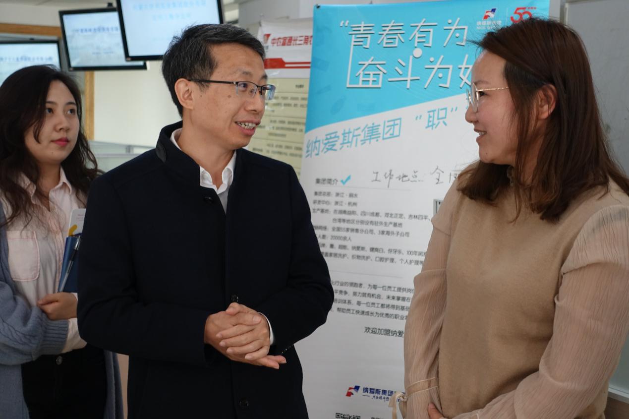 4月12日下午,2019年det365登录网站主页经管学院专场校园招聘会在大学生就业指导中心顺利举行。本次招聘会共吸引了27家知名企业前来招贤纳士,提供了795个就业岗位。det365登录网站主页党委书记姜海、本科生辅导员到现场了解学生与企业的交流情况。