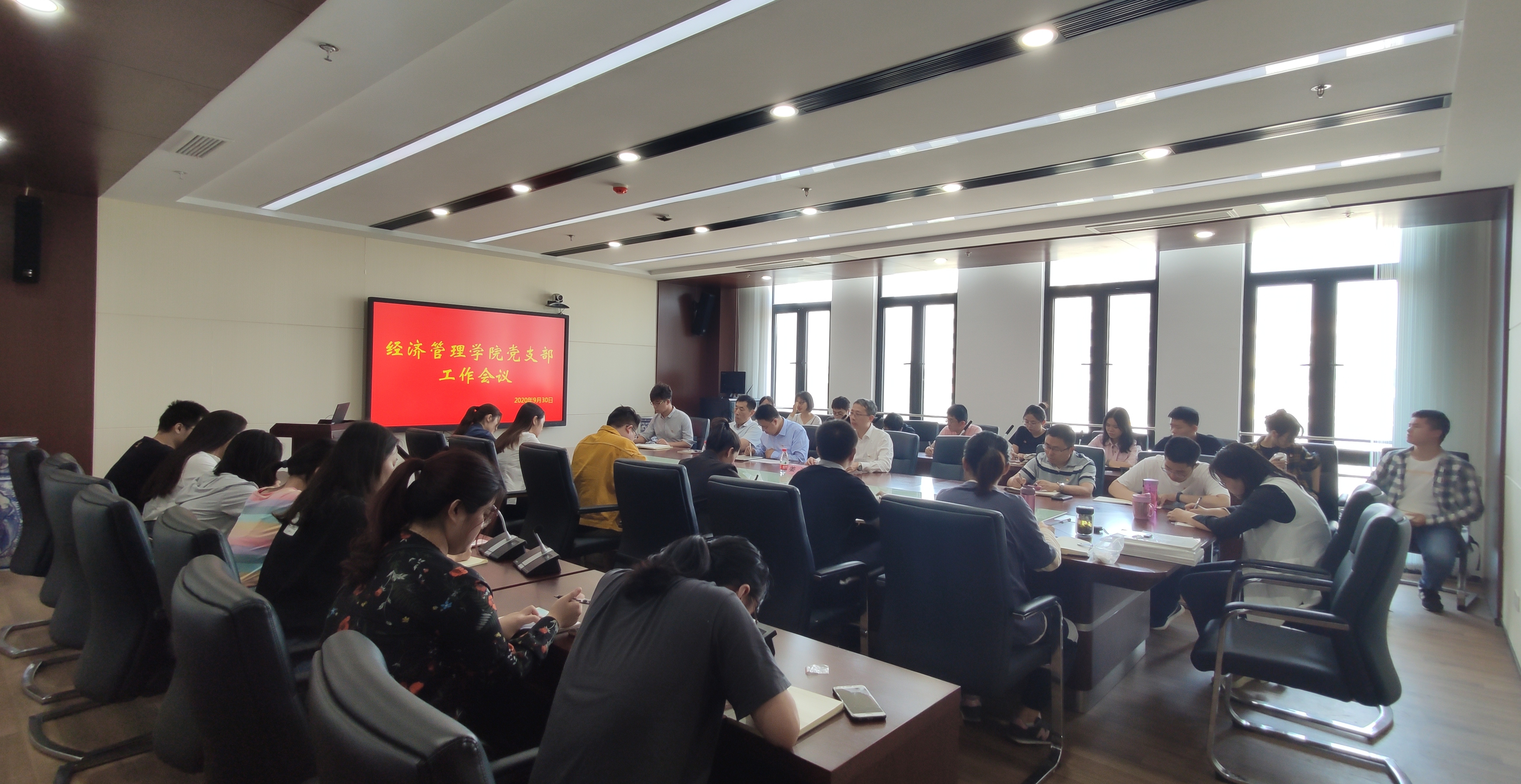 9月30日下午,det365登录网站主页党委组织召开新学期党支部工作会议暨党支部书记集中学习。院党委书记姜海主持会议,院党委副书记宋俊峰、各师生党支部书记、副书记(委员)等参加会议。