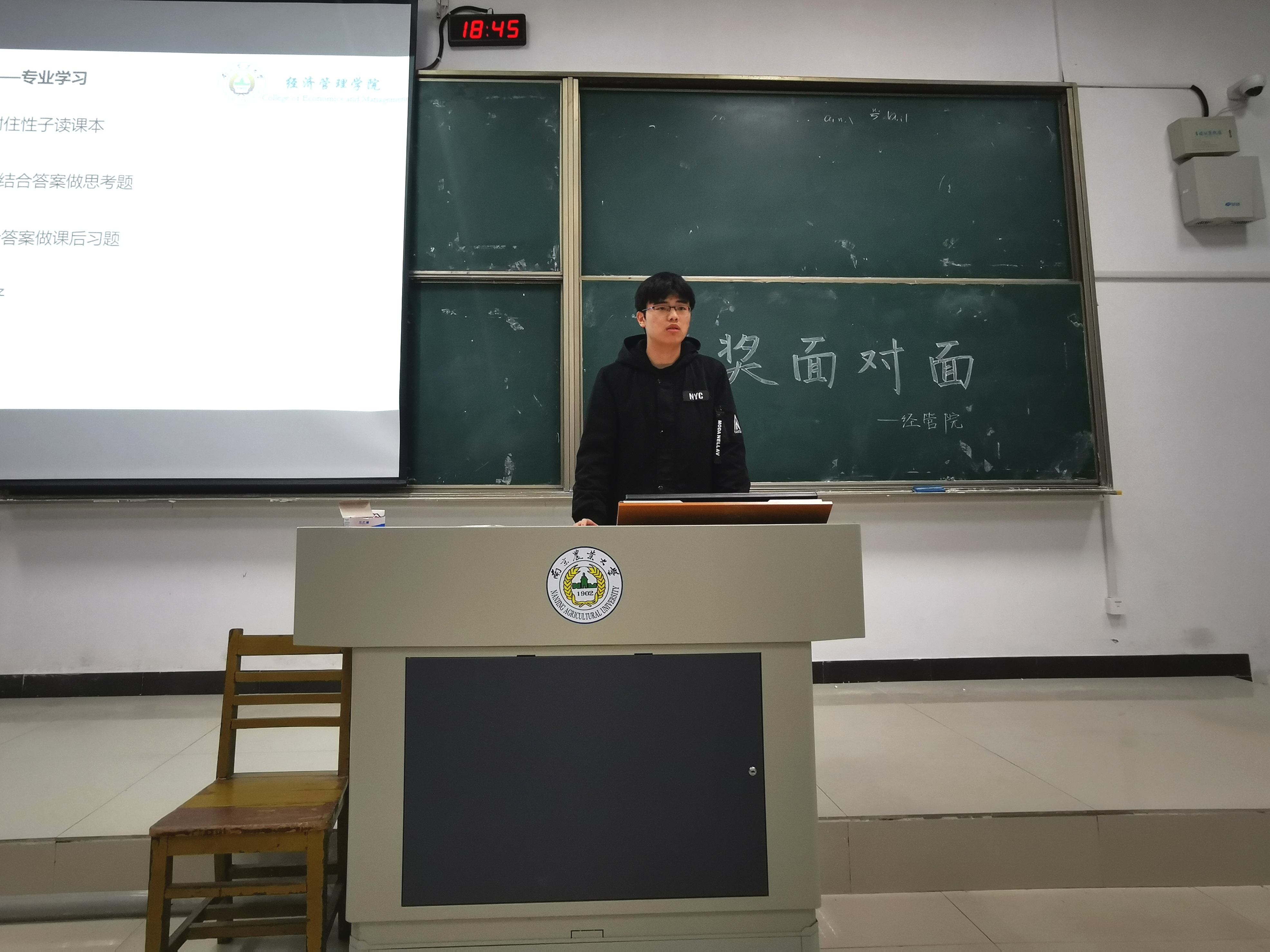 同学们受益匪浅,满怀对未来的期待,活动圆满结束。“国奖面对面”经验交流分享会是经管院学风建设月的系列活动之一,旨在建立起新生与老生沟通的桥梁,以充分发挥优秀本科生的榜样引领作用,助力营造良好学风。
