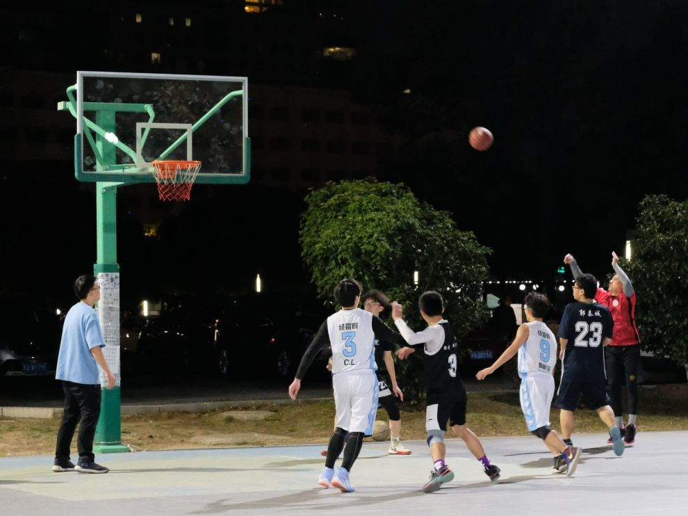 尽管步入深秋,夜晚寒凉,队员们仍摩拳擦掌,跃跃欲试。随着裁判哨音吹响,比赛正式开始。比赛分为两场,经过激励角逐,两支研究生队伍分别以28:20与38:41的成绩取得了两场比赛胜利。在比赛的休息时间,研究生队伍与本科生队伍进行了一场男女混合的罚篮比赛,研究生队取得了罚篮比赛的胜利。