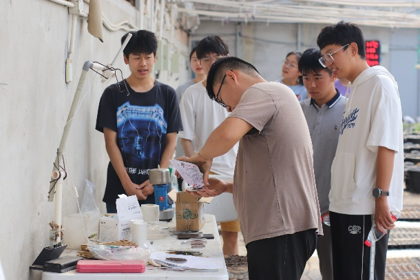 在实践环节,活动成员参与了莴苣、甘蓝和生菜的播种工作。依照实验员的指导,在480种不同土壤基质上,依次完成了三类种子的播种铺土及浇水等工作。通过实地体验式劳动教育,调动了同学们投身三农事业的积极性和主动性。成员们相约待作物成熟时,再次来此学习和实践。