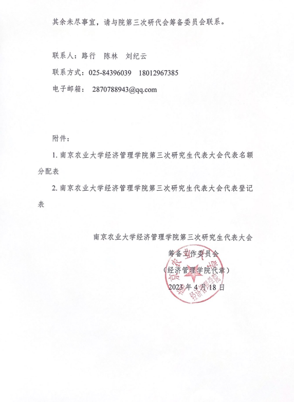 关于召开det365登录网站主页第三次研究生代表大会的通知及学生代表名册