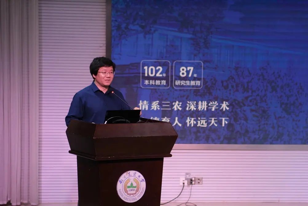会议第一阶段,徐志刚院长从发展印记、学科与专业设置、科学研究等方面阐述了学院深厚的学科底蕴与实力,带领大家回顾百年南农悠久的历史。情系“三农”,通过无数南农人的奋斗故事,徐志刚院长提出要做到以高自我定位为标准,强化服务社会和创新挑战意识,打开个人格局,平衡好个人发展与社会需求关系,强化多元发展意识。力争做到“创新型社会精英”的南农人。最后徐志刚院长祝全体新生身体健康,学习进步,心情愉快,做有格局、有情怀、大视野、高本领的南农人。