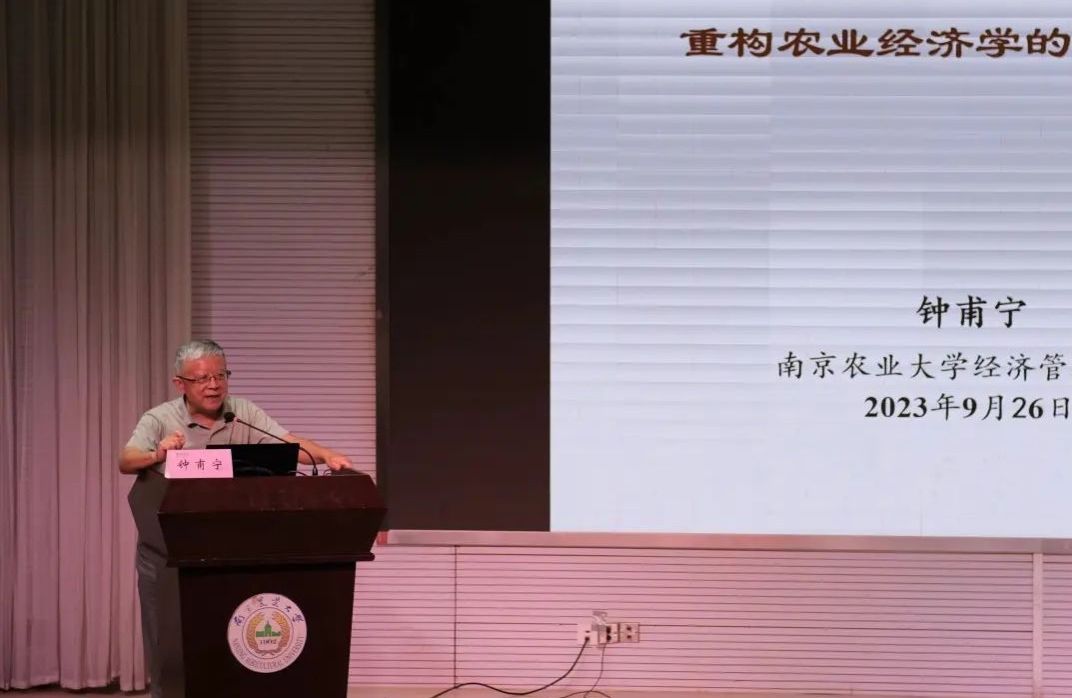 会议第二阶段,由钟甫宁教授为2023级全体研究生新生讲授入学第一课。钟甫宁教授从他自己的学习成长经历讲起,从中小学教育、黄金时期(插队十年)到大学和留学生涯,教育同学们要“活到老、学到老”,抓住一切可能得时间去学习、一切可能的机会去突破。后面钟甫宁教授为新生讲授了重构农业经济学的基本思路,鼓励学生构建自己的知识体系,倡导大家抓住时间读书、锻炼身体,坦然面对一切。注意克服传统意义上的功利主义,面对多重不确定性时,不要钻学术的“牛角尖”。要“宽基础,窄专业”,学习多方面的知识,成为一名勤于动脑,善于思考的南农人。
