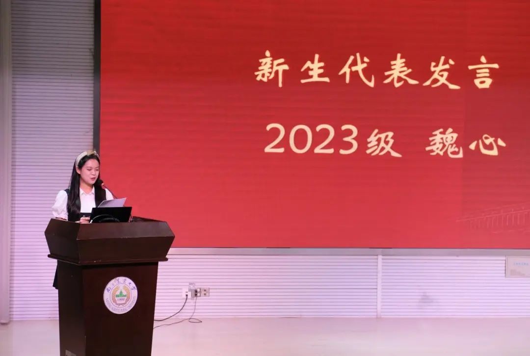 2023级国际商务硕士魏心作为新生代表发言。她说,我们要以积极主动之姿、无惧困难之态,勇攀知识的高峰;以明辨是非之思、自律自省之心,跃进人生步伐。作为“三农”学子,要脚踏实地“向下扎根”,昂首挺胸“向上生长”,将个人发展与农业农村的广阔天地紧密相连,为全面建设社会主义现代化国家贡献南农青春力量。