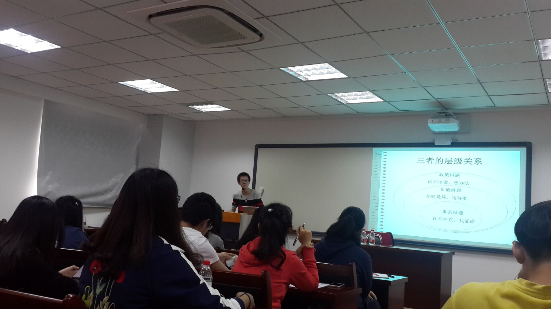 周军在本次讲座中深入浅出地讲解了辩论中的价值辩中应该注意的问题,对于定义和优劣立场进行了着重分析,还列举了辩论赛中实用的方法,将理论与实践相结合。王艺锦就辩论中另一大类别政策辩进行了详尽的分析,以需根解损为出发,结合我校今年院系杯辩论赛题目,点明正反双方应尽的论证义务。
