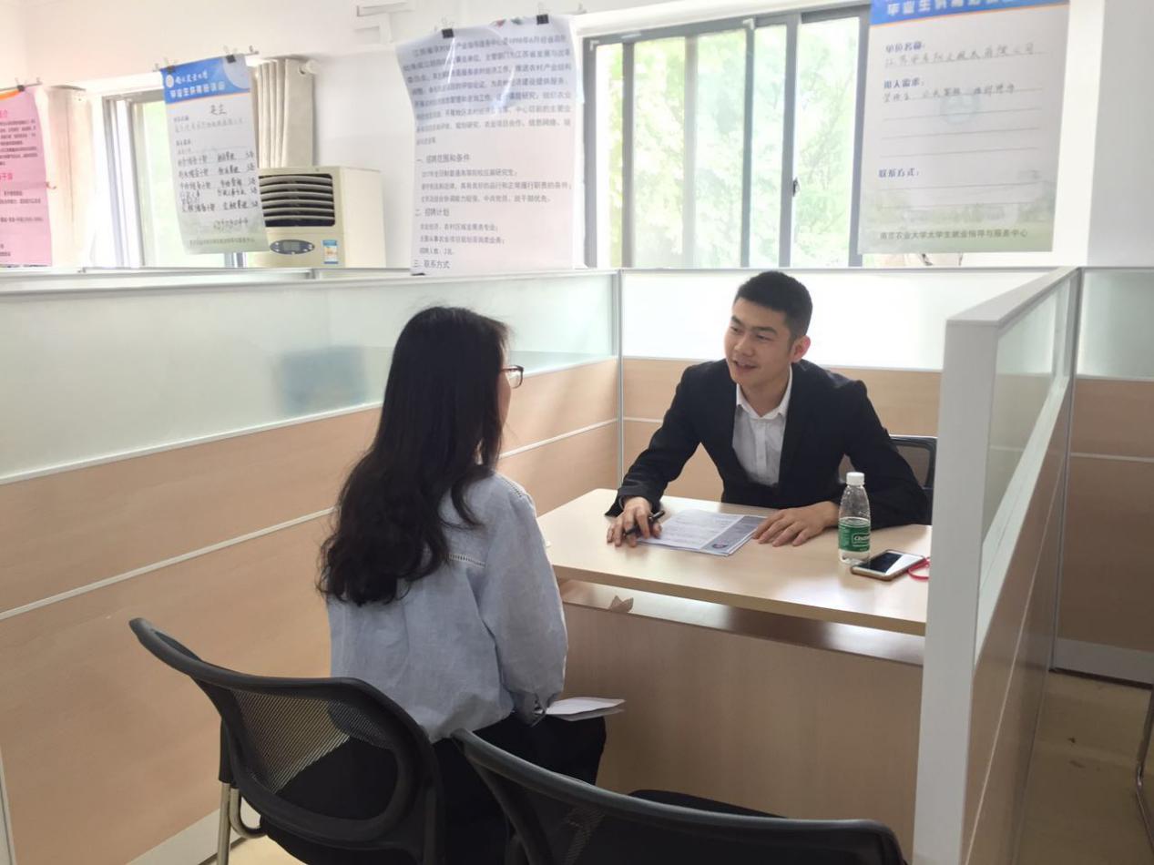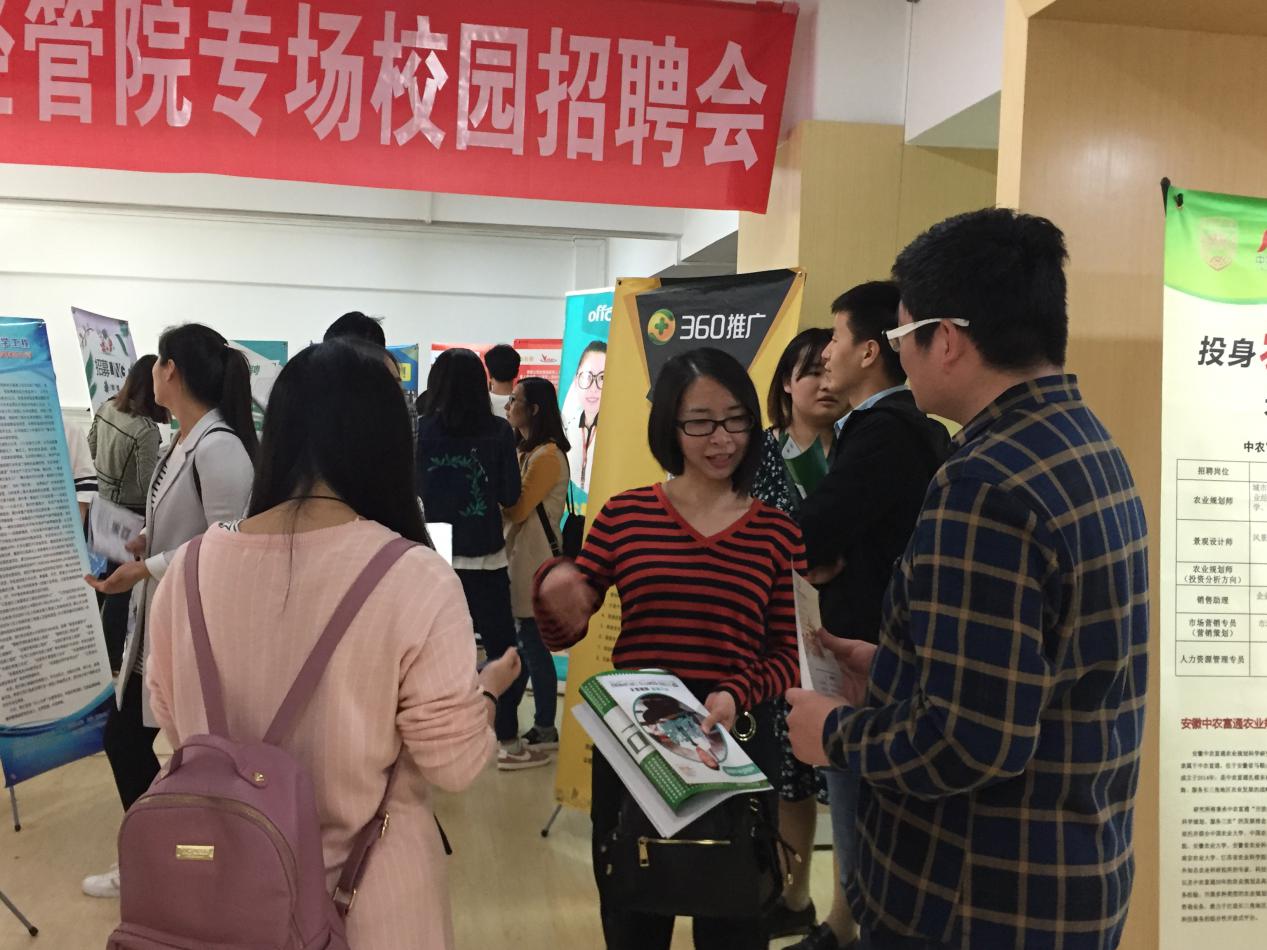 5月5日下午2:30,2017年det365登录网站主页经管学院专场校园招聘会在大学生就业指导中心举行。本次招聘会共吸引了20家知名企业前来招贤纳士,提供近 230个就业岗位。det365登录网站主页党委副书记卢忠菊、辅导员施培菊、李扬等到现场了解了学生与企业的交流情况。