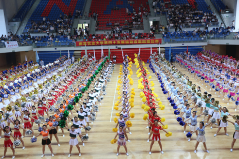 5月24日下午,det365登录网站主页第四十五届运动会啦啦操比赛在我校体育馆举行,全校16支队伍参加此次比赛,det365官网28名同学组队参赛。