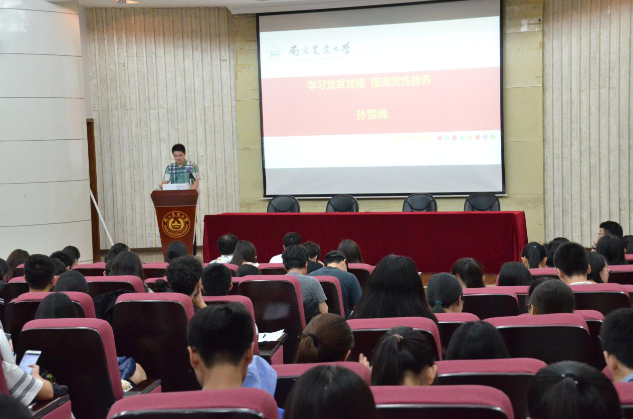 6月28日下午,det365登录网站主页在图书馆报告厅举行“两学一做”专题党课,学院党委副书记(主持工作)孙雪峰为全体学生党员、预备党员、入党积极分子上了题为《学习党章党规,提高党性修养》的专题党课。