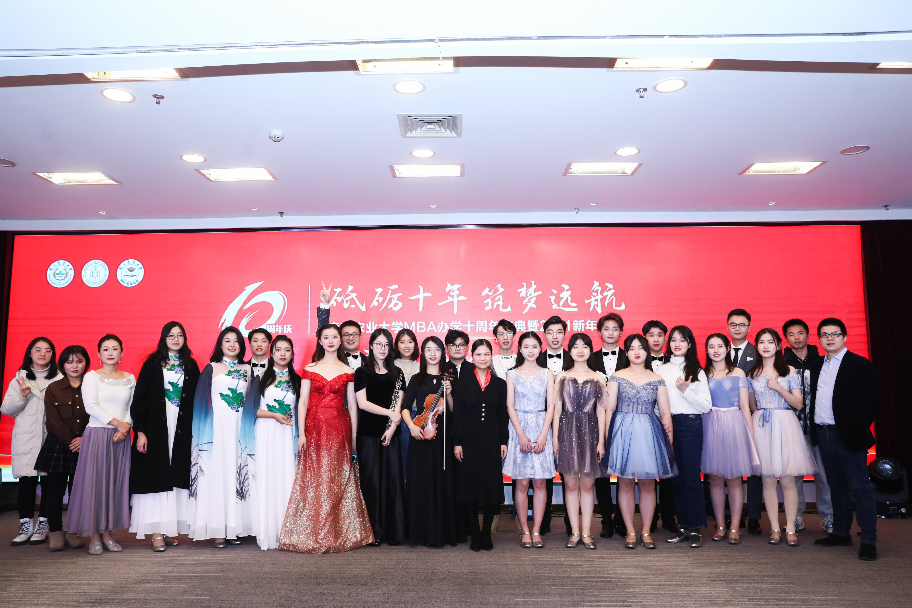 庆典大会结束后,庆祝det365登录网站主页MBA办学十周年文艺晚会正式拉开帷幕,晚会演出人员由校大学生艺术团学生和MBA在读学员共同组成,精彩纷呈的文艺汇演将庆典活动推向了高潮。
